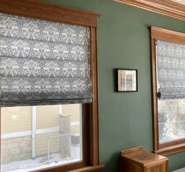 These custom handmade to order, cotton roman shades are beautiful and functional.